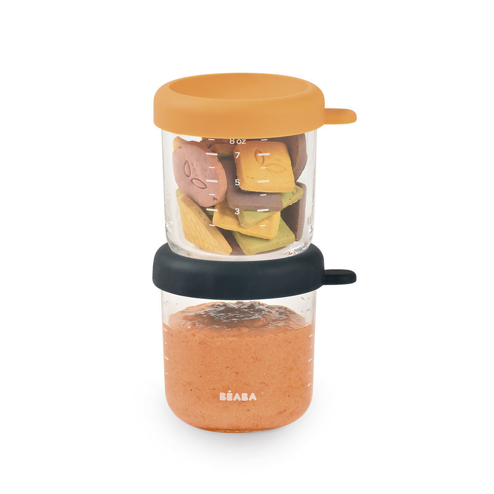 Beaba's Glass & Silicone jars are designed for freezing, storing and transporting meals for baby and the rest of the family. They feature heat and thermal shock resistant glass and visible graduation marks to make measuring easy