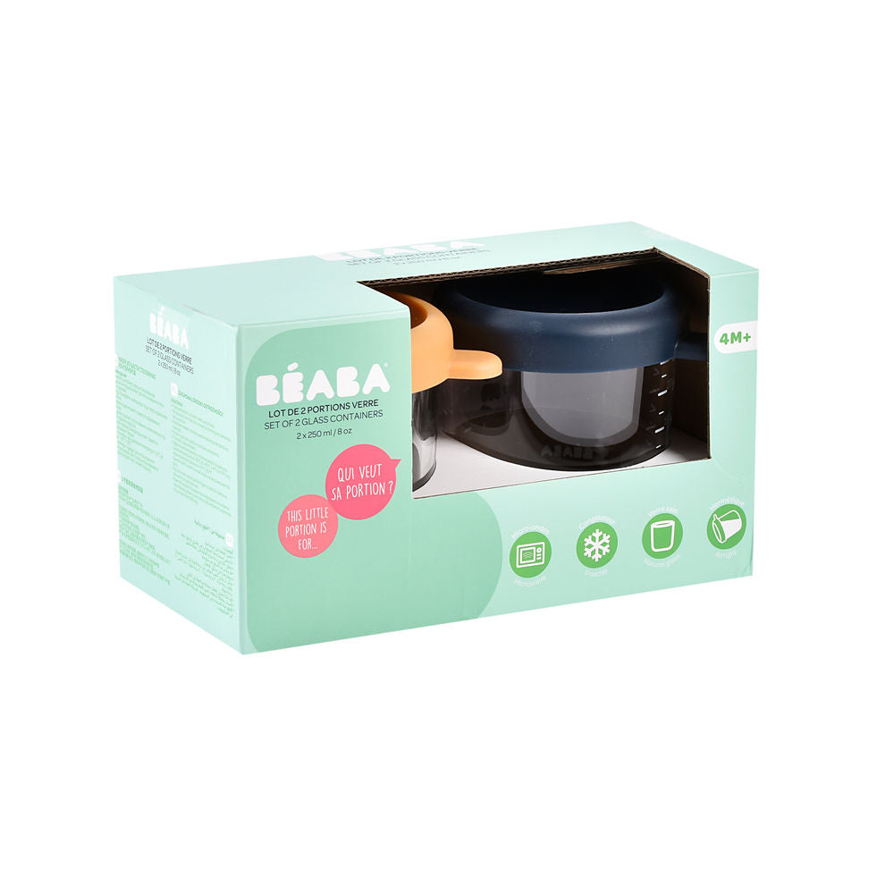 Beaba Glass Jars 250ml 2 Pack - Night Blue/Honey