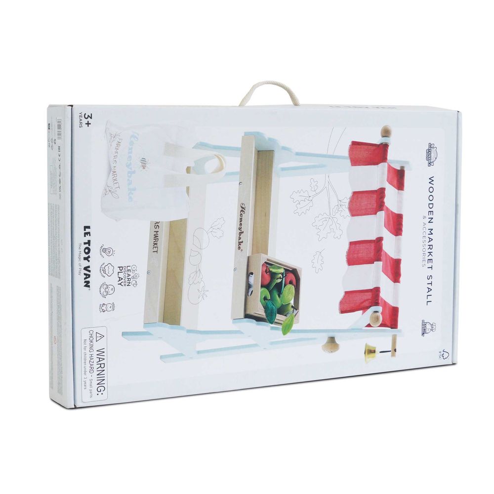 Designed by a team of talented toy makers for immersive role play, day after day. Complete with fabric shopping bag and a crate of apples and pears. Little ones will adore serving customers at the market style shop complete with shelves, ideal for housing our wooden crates