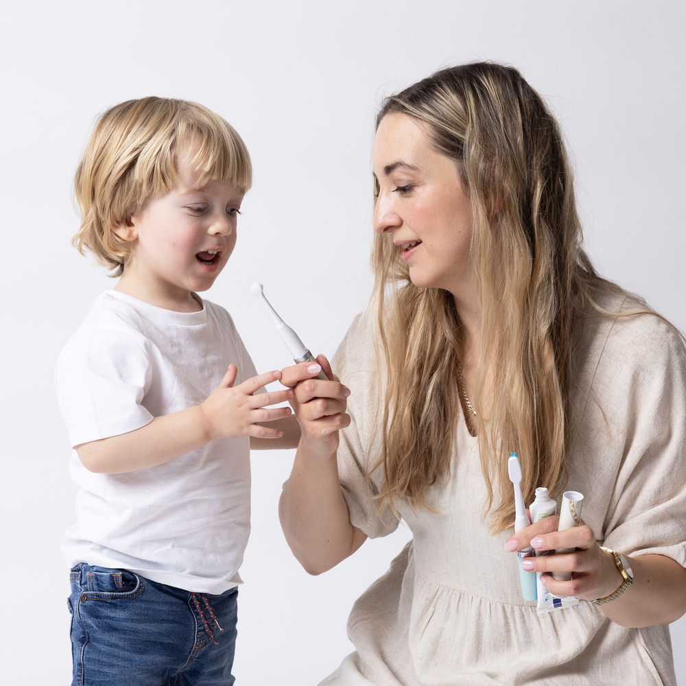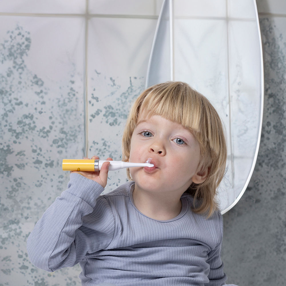 • Battery-powered electronic sonic toothbrush for babies and toddlers