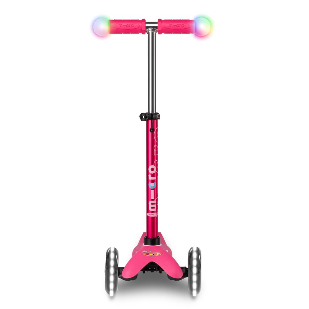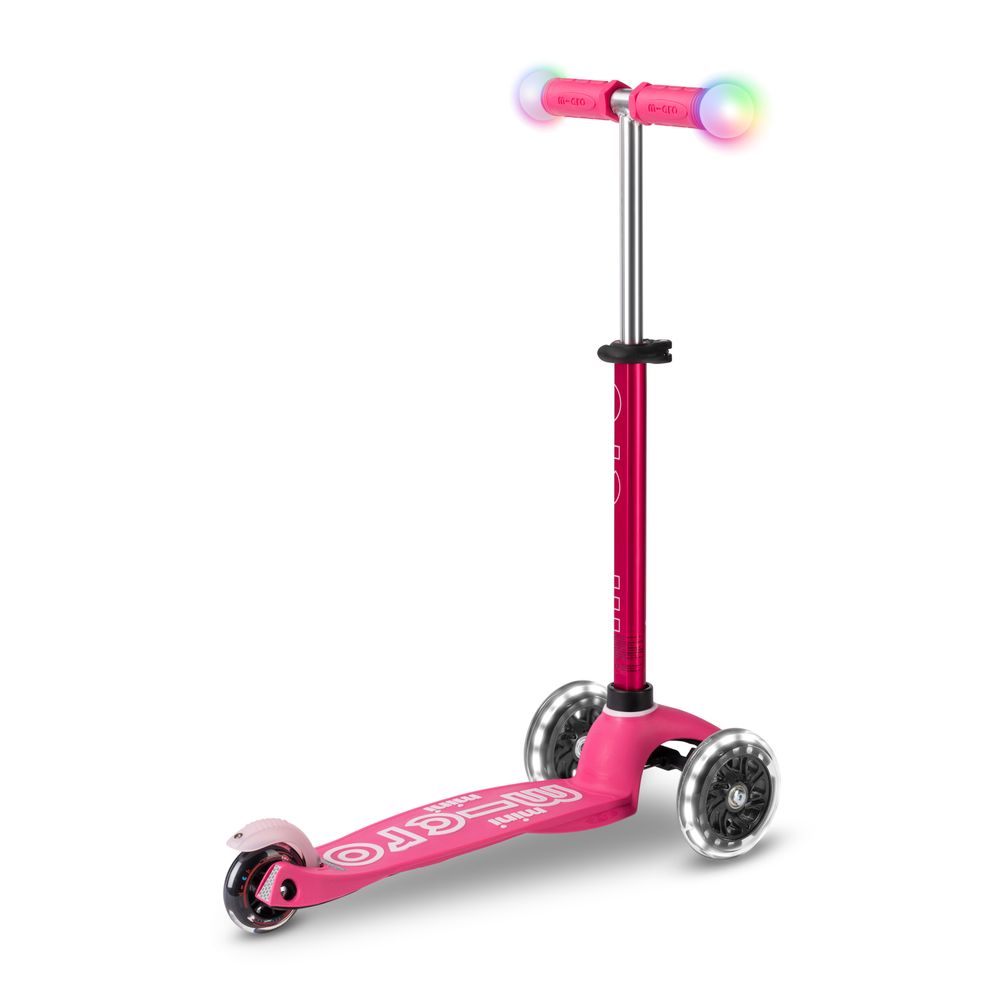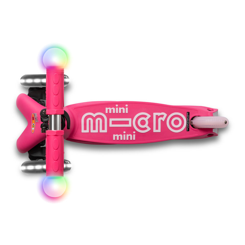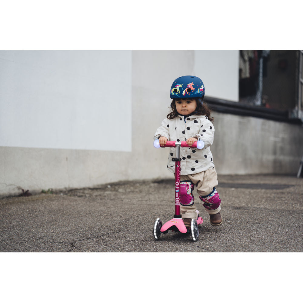 As soon as your child touches the handlebar of the Mini Micro Deluxe Magic, the integrated touch sensor makes the LED lights on the handlebar shine in five different colours. This not only increases the fun factor, but also the visibility and safety in the dark