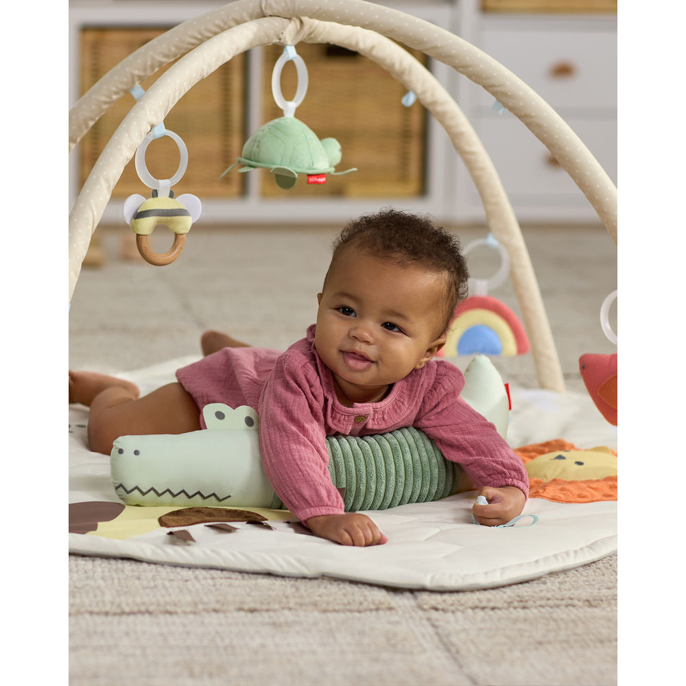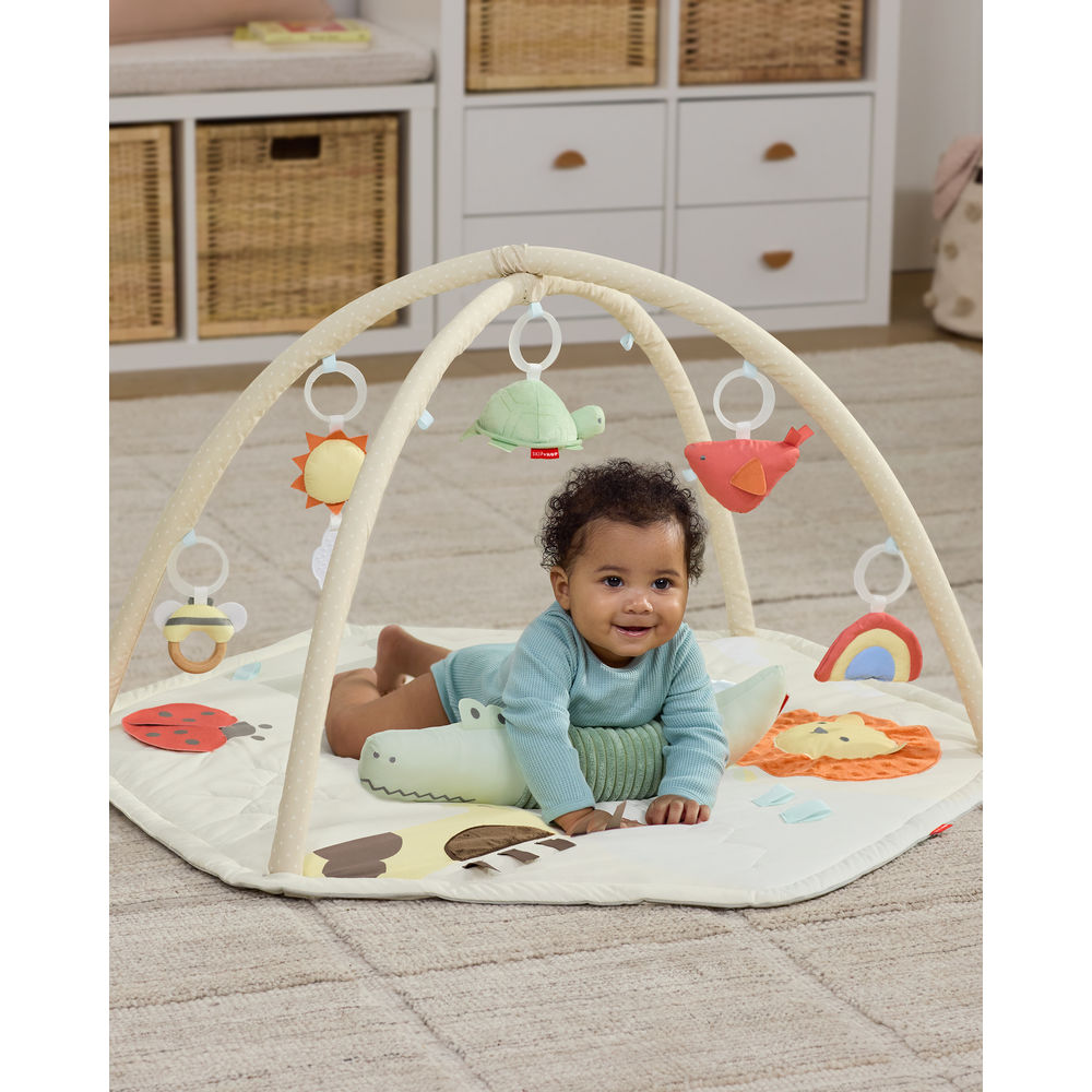 With high-contrast patterns, various textures, and fun sounds, this activity gym encourages tummy time, reaching, grasping, and overall motor skill development. The removable toys make playtime fun both on and off the mat, while the neutral colour palette blends seamlessly with any home decor