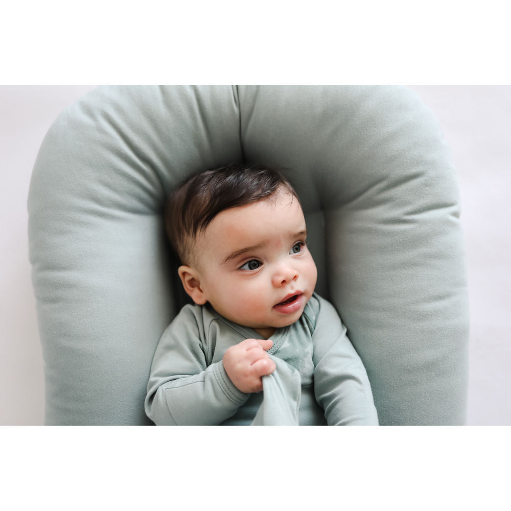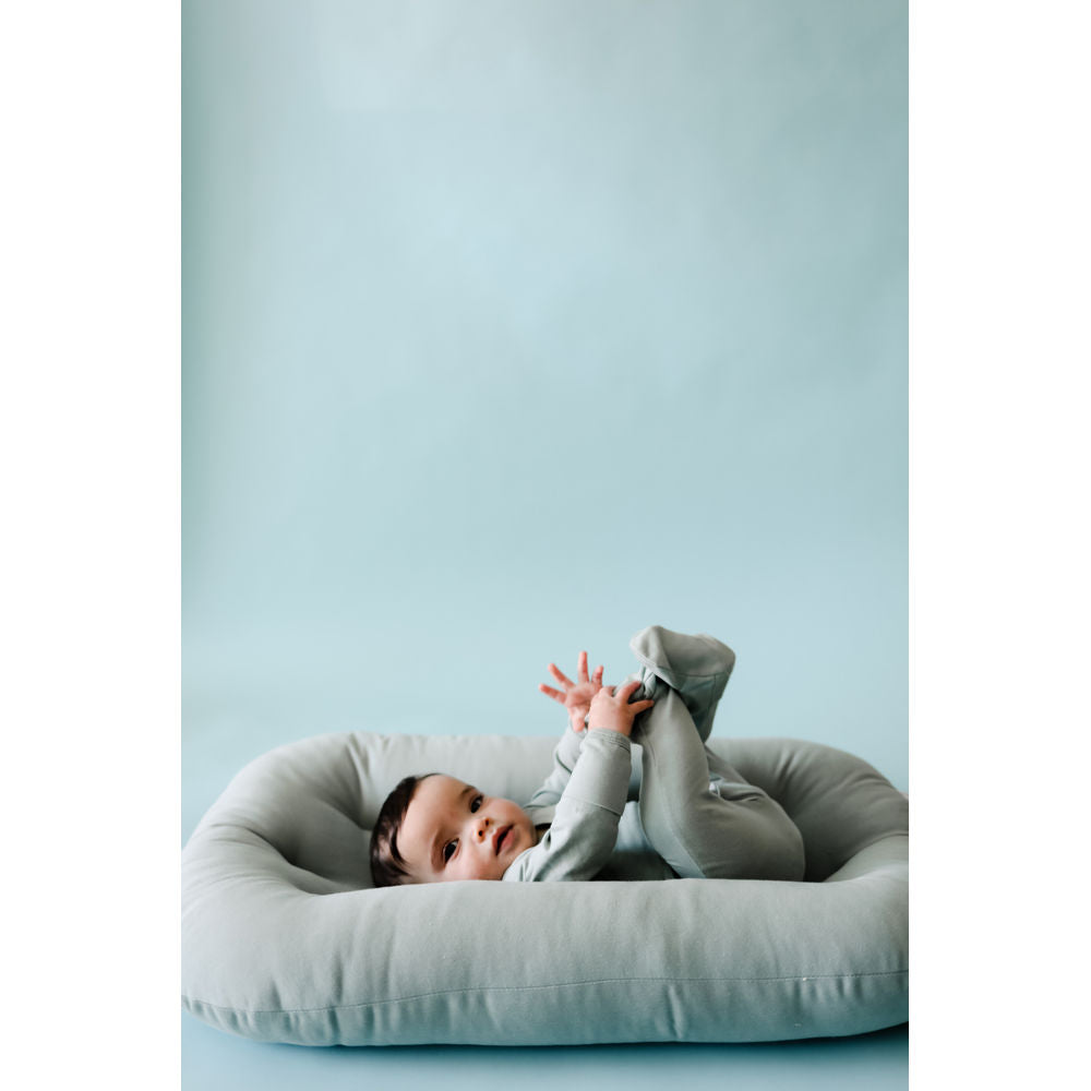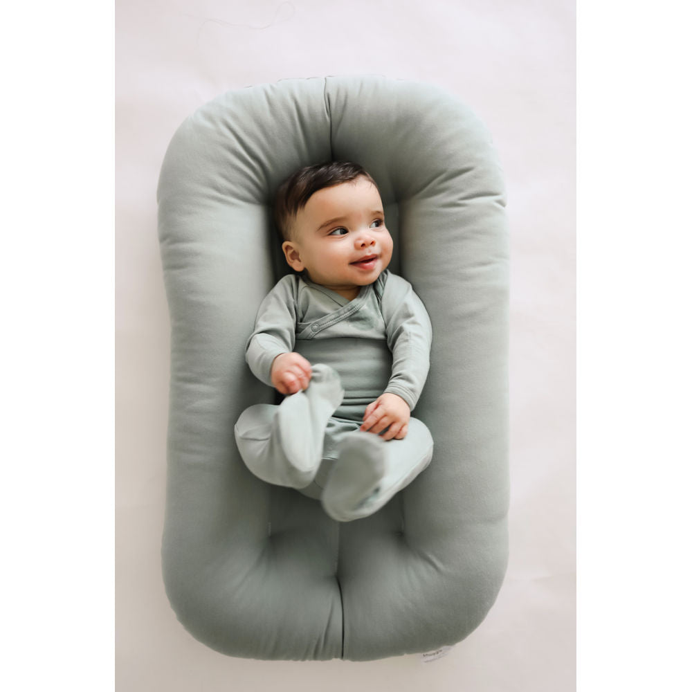 • The Infant Lounger is suitable for babies aged 0-9 months. For older babies, we recommend transitioning to a Toddler Lounger only when they are 9+months, 53cm from head to bum (not feet) and are a strong crawler who can correct their own positioning. If your baby meets these milestones, consider the Toddler Lounger
