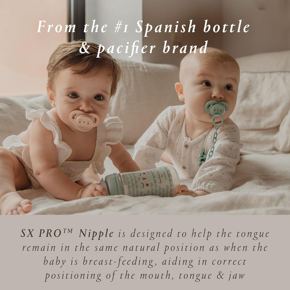 RESPECT THE ORAL DEVELOPMENT OF THE BABY. Designed to Respect the Oral Development of the Baby. The Physiological SX Pro teat leaves more space for the tongue in the oral cavity so that sucking is as natural as possible. It is designed not to invade the oral cavity and provide the baby with the same sensation that it experiences in its natural or physiological state, when it does not have a pacifier.